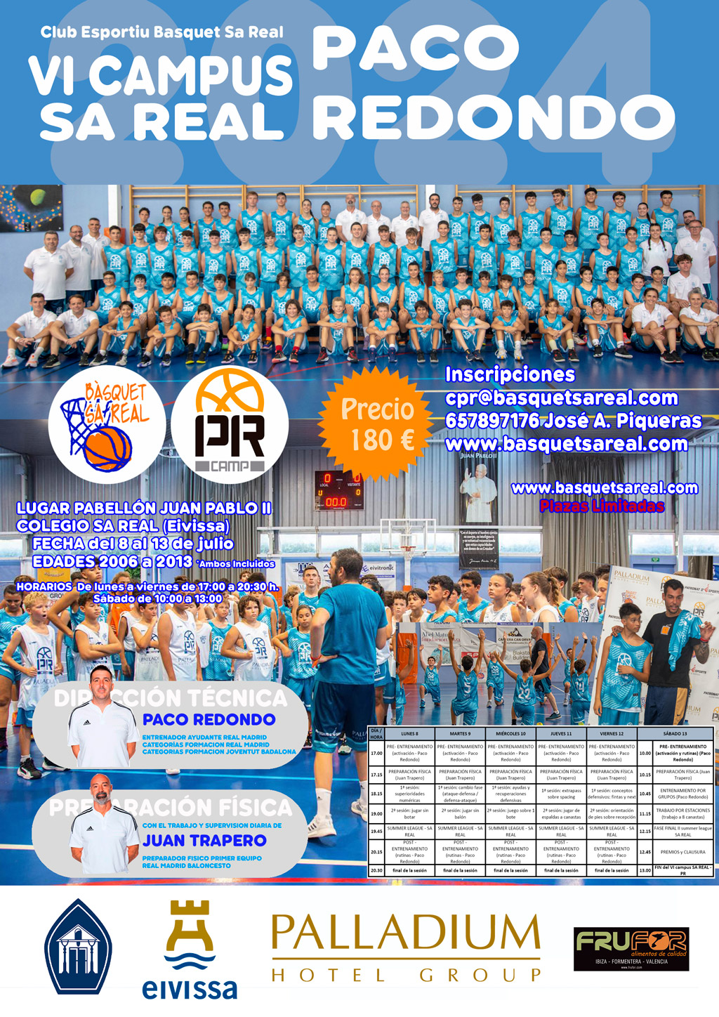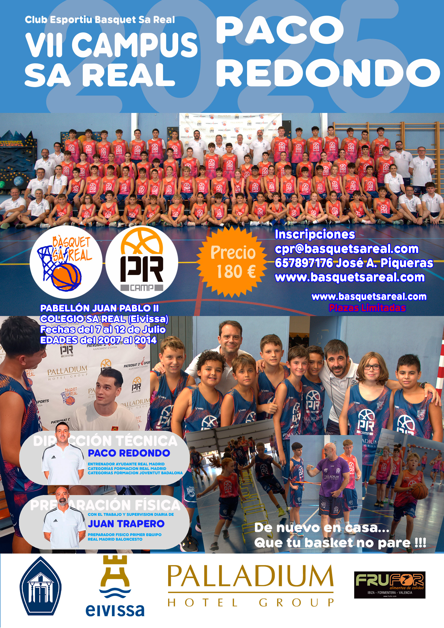 El III Campus de Bàsquet Sa Real Paco Redondo tindrà lloc del 12 al 17 de juliol al pavelló Joan Pau II del col·legi Sa Real amb el suport del patrocinadors principals l'ajuntament d'Eivissa, Palladium Hotel Group i la resta de col.laaboradors.